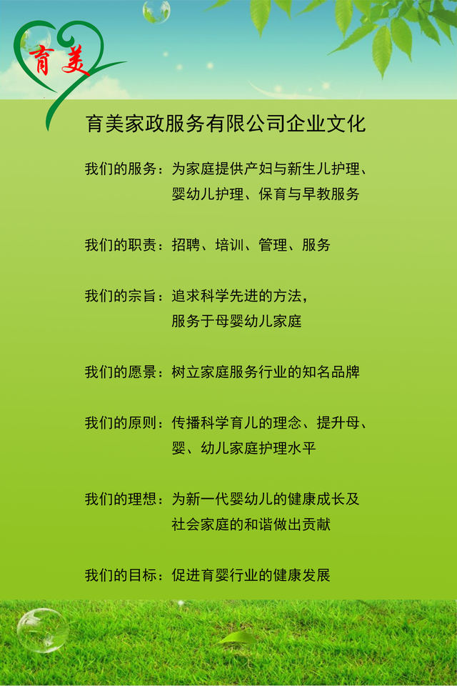 育美家政 專于婦嬰 來自華東 服務(wù)鄭州/育美家政服務(wù)有限公司是一家員工制管理(非中介)的公司。 主營(yíng)業(yè)務(wù):產(chǎn)婦護(hù)理和新生兒護(hù)理/0-3歲嬰幼兒護(hù)理/催乳按摩服務(wù)/月嫂和育嬰師培訓(xùn)/家庭育兒入戶指導(dǎo)